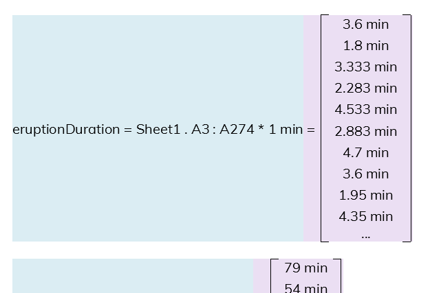 Since the numbers in the data are unitless, but they're supposed to be in minutes, multiply each set by 1 min.